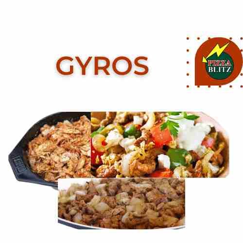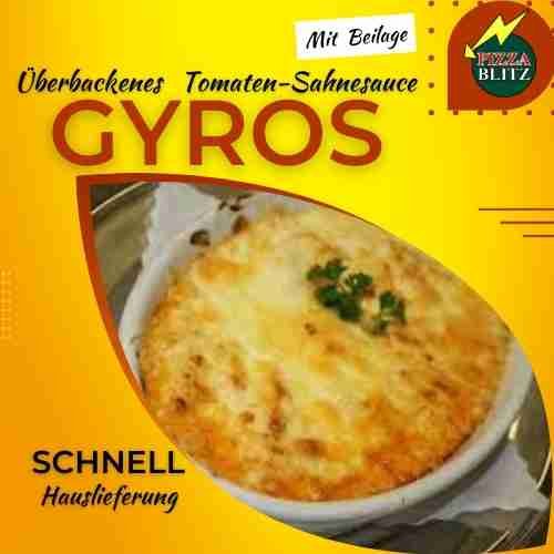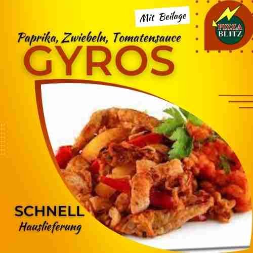 Gyros mit Paprika, Zwiebeln, Tomatensauce und mit Käse Überbacken Wahl aus: mit Pommes frites, mit Reis oder ohne Beilage.