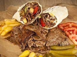 mit gewürztem Fleisch vom Drehspieß, Pommes frites und Sauce 1, 2, 5, 6, A1, C, G, I