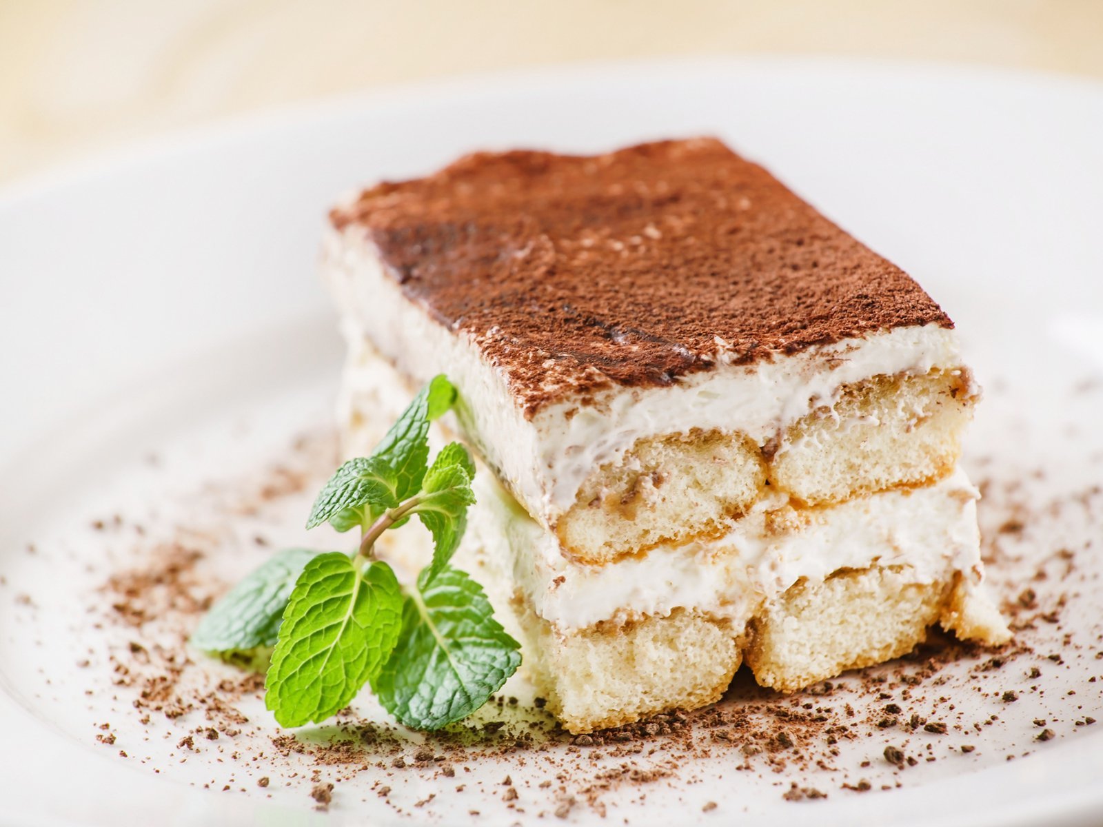 abwechselnden Schichten von Läffelbiskuits und einer Creme aus Mascarpone, Eigelb und Zucker.1, 11, 17, 2, A1, C, G