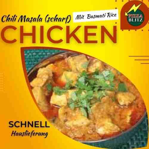 gebratenes Hühnerfleisch mit scharfer Spezialsauce, Peperoni, Zwiebeln, Tomaten und Champignons 5, H2, H3, H4, H7