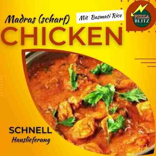 Hühnerfleisch mit würziger Sauce, Zwiebeln, Tomaten und grünen Erbsen 5, E, G, H2, H3, H4, H7