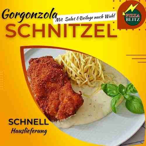 mit Gorgonzolasauce Wahl aus: mit Kroketten, mit Nudeln, mit Pommes frites oder ohne Beilage.