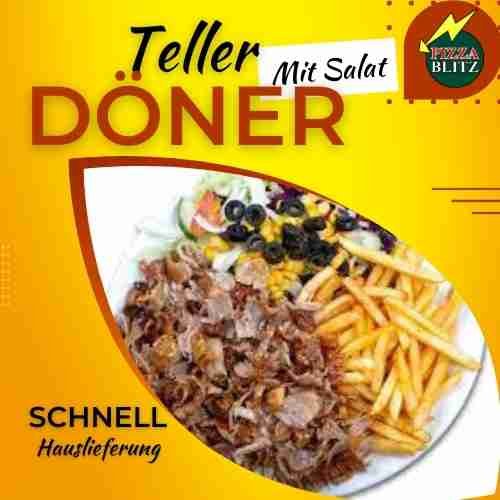 mit gewürztem Fleisch vom Drehspieß, Pommes frites und Salat 1, 2, 5, 6, A1, C, G, I