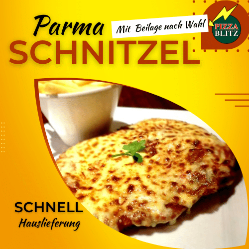 paniertes Schnitzel mit Tomaten und mit Käse Überbacken Wahl aus: mit Kroketten, mit Nudeln, mit Pommes frites oder ohne Beilage.