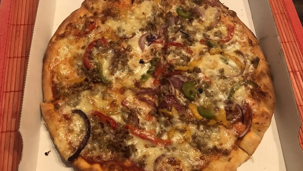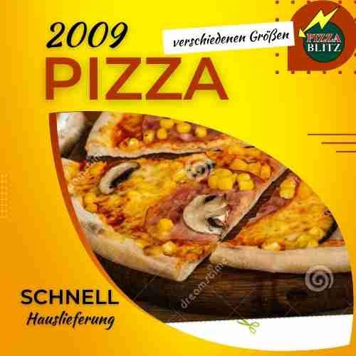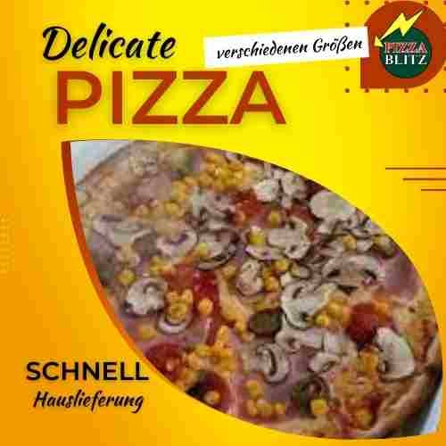 mit Pilzen, Zwiebeln, Speck, Rinderformfleischschinken, Knoblauch, Mais und Käse