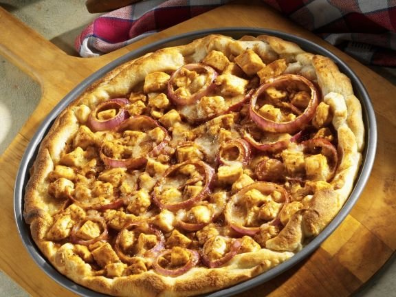 mit Salami, Zwiebeln, Mais, BBQ-Sauce und Hähnchenfleisch 1, 2, 3, 5, 6, A1, C, G